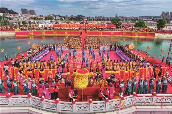 10月29日(农历九月初九),莆田贤良港天后祖祠纪念妈祖羽化升天1038周年海祭大典暨妈祖信俗(莆田贤良港海祭)宣传展示活动举行。来自海内外的妈祖敬仰者数千人齐聚一起,以传承千年的古老仪式,铭记妈祖恩德,弘扬妈祖精神。与此同时,“天下第一锅”美食共飨、英歌舞首演、莆台书画展等系列精彩活动轮番上演,共同绘就了一幅非遗传承与文化交流交融的生动画卷,让千年信俗在新时代焕发出璀璨光彩。