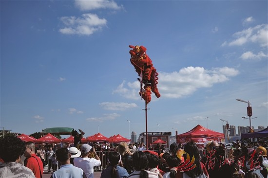 除了气势恢宏的英歌舞,本次纪念活动期间,贤良港天后祖祠还精心组织了一系列丰富多彩的民俗展演。惊险刺激的踩高跷、古韵悠扬的莆仙十音八乐、绚丽夺目的烟花表演以及原汁原味的莆仙戏公演轮番上场,不仅为妈祖祭典活动注入了全新的文化元素,更是推动着不同地域、不同形态的民俗艺术相互碰撞、彼此欣赏,共同传承和弘扬中华优秀传统文化。