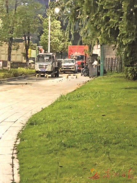 10月30日,一名热心市民致电本报反映,市区城东一居民小区外的人行道和盲道,被一家汽修店非法占用,天天停满补胎车辆,导致行人和盲人无法通行。