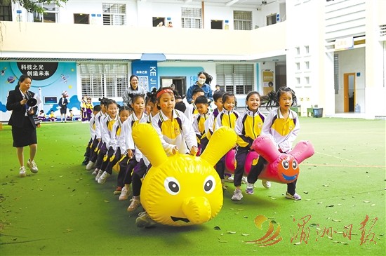 11月5日,市第二实验小学举行2025年“活力校园,阳光体育”秋季运动会。图为学生们在参加“毛毛虫”趣味比赛。