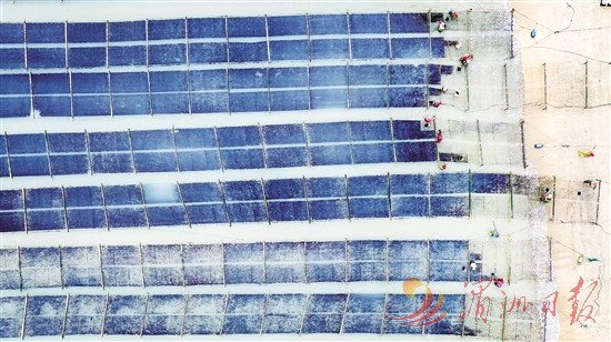 连日来,“中国紫菜第一村”山亭镇蒋山村2000多亩紫菜陆续出水上市。图为采收现场。