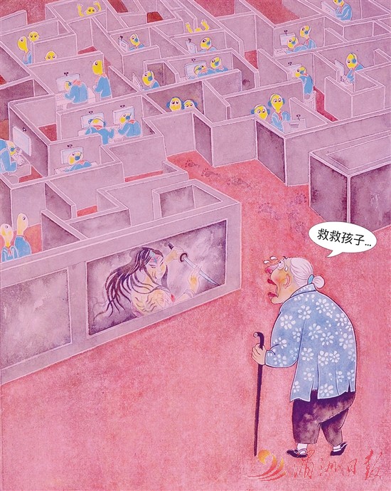 中国著名漫画艺术家缪印堂先生说:“漫画能描绘整个宏观世界和微观世界,它能在谐趣中给人动之以情,明之以理,真是一种雅俗共赏的奇妙艺术”。《笼中对》的艺术魅力触动了人们的联想,给人启迪,给人警示:人人都会老,莫学《笼中对》。 刘金林