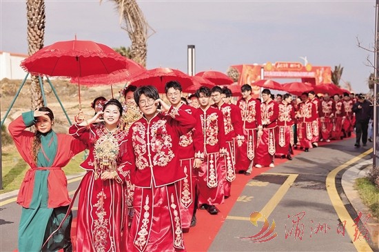 11月21日,秀屿区南日岛婚姻登记处揭牌仪式暨集体婚礼活动在南日岛举行。19对新人参加了独具海岛风情的集体婚礼,享受浪漫时刻。谢孟洁 吴国强 摄