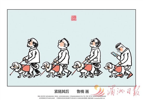 近年来,网络直播司空见惯,甚至成为人们生活的一部分,但网络空间良莠不齐、真假混杂。网络直播中,美颜软件大量存在,为吸引眼球、增加流量,几乎成为网红“标配”。以假乱真,虚拟形象与现实形象严重脱节,导致一系列问题,如网络欺诈、信任危机等。鲁楠敏锐抓住直播时代社会热点,创作了《准备直播》。作品通过人们熟悉的老鼠、米老鼠动漫形象的反差,形成鲜明对比,以别具一格的“喜感”讽刺,会意一笑间,引人深思,发人深省。《准备直播》漫画作品在《湄洲日报》《图说》漫画版面刊登,荣获第34届中国新闻奖二等奖。