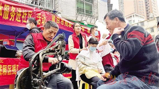 本报讯 (全媒体记者 蔡晨晖 文/图)12月3日是第34个国际残疾人日。当天上午,城厢区龙桥街道下磨市场比往日更热闹。一场由市残联主办的“莆善情”助残办实事活动在这里举行。