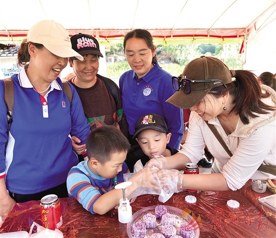 庄边镇岐山村依托特色农业,致力于农文旅融合发展。图为12月7日,一批游客在该村沉浸式体验紫玉淮山膏DIY。全媒体记者 刘永福 摄