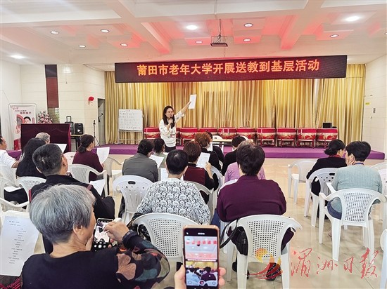 本报讯 为深入学习贯彻党的二十届四中全会精神,落实积极应对人口老龄化国家战略,推动优质老年教育资源向基层延伸,连日来,市老年大学组织骨干教师赴荔城区荔园小区、城厢区万辉社区、涵江区延宁社区等教学点开展“送教到基层”活动,为老同志提供“家门口的优质教育”。
