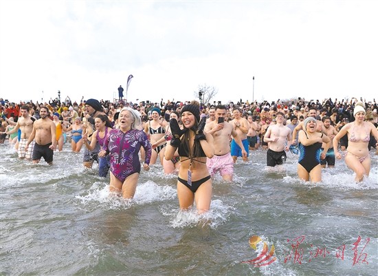 2026年1月1日,人们在加拿大多伦多的安大略湖边参加“北极熊冬泳”活动,欢庆新年。新华社 发