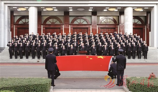 “我志愿加入中国共产党,拥护党的纲领,遵守党的章程……”在木兰溪治理展示馆的党旗下,莆田中院干警们的铮铮誓言回荡不息。这是一次主题党日活动,更是常态化政治淬炼的缩影。