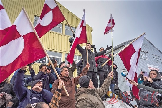 1月17日,在丹麦自治领地格陵兰岛首府努克,格陵兰岛自治政府总理延斯-弗雷德里克·尼尔森(中)与当地民众参加示威游行。1月17日,丹麦本土与格陵兰岛多地举行示威游行,抗议美国企图“控制”或“购买”格陵兰岛。 新华社 发