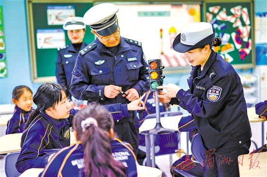 1月28日,天津市公安局滨海分局交通管理支队民警在天津市海嘉学校向学生讲解道路交通安全知识。1月28日,天津市公安局滨海分局交通管理支队民警走进天津市海嘉学校,为学生讲授交通安全课,增强学生交通安全意识和自我防护能力。新华社 发
