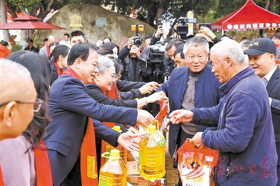 本报讯(全媒体记者 周凌瀚 通讯员 林春盛 文/图)1月30日,2026年湄洲妈祖祖庙“慈善之光”春节送温暖活动在湄洲妈祖祖庙大牌坊广场举行,用善举践行妈祖大爱精神,赋能湄洲岛“爱之岛”品牌。