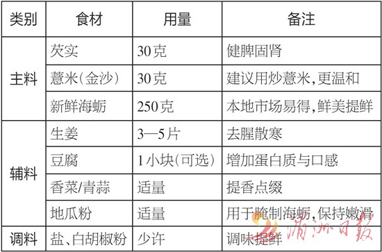 补肾益精。芡实能固肾气,海蛎富含锌和蛋白质,有助于补充体力、滋润身体,尤其适合容易腰酸、熬夜后虚乏的人。