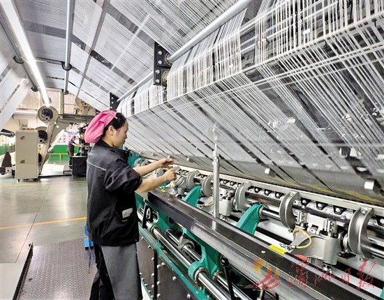本报讯 (全媒体记者 蔡蕊 文/图)2月19日,大年初三,位于秀屿区东峤镇的华峰华锦有限公司生产车间内,一排排大型机械设备开足马力、全力运转,一卷卷洁白的涤纶丝线在织机上飞旋。留守的员工在岗位上熟练操作、细致巡检,在车间机器的节奏里,“酿”出别样年味,以火热的生产氛围喜迎马年新春。