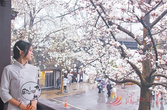 3月1日,游客在玉兰绽放的江苏省苏州市狮子林赏花游玩。春暖花开,神州各地春意融融。人们纷纷来到户外踏青赏花,乐享春光。