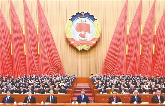 三月的北京,春启华章。人民大会堂大礼堂灯光璀璨,气氛隆重热烈。中国人民政治协商会议会徽悬挂在主席台正中,十面鲜艳的红旗分列两侧。